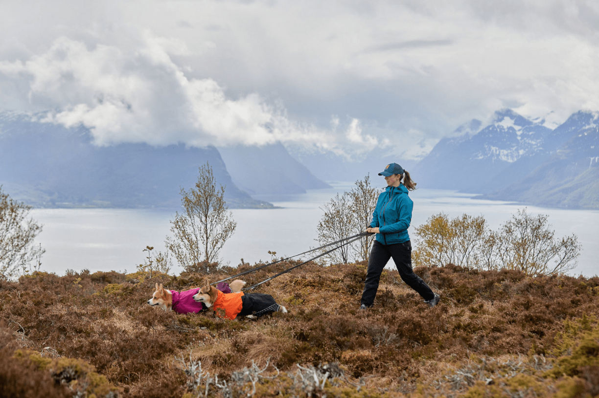 A dedicated leash opening allows a harness to be worn under the raincoat. Reflective details provide high visibility in the dark as well as on overcast days. The Fjord raincoat is lightweight and packs easily into the included compression bag.