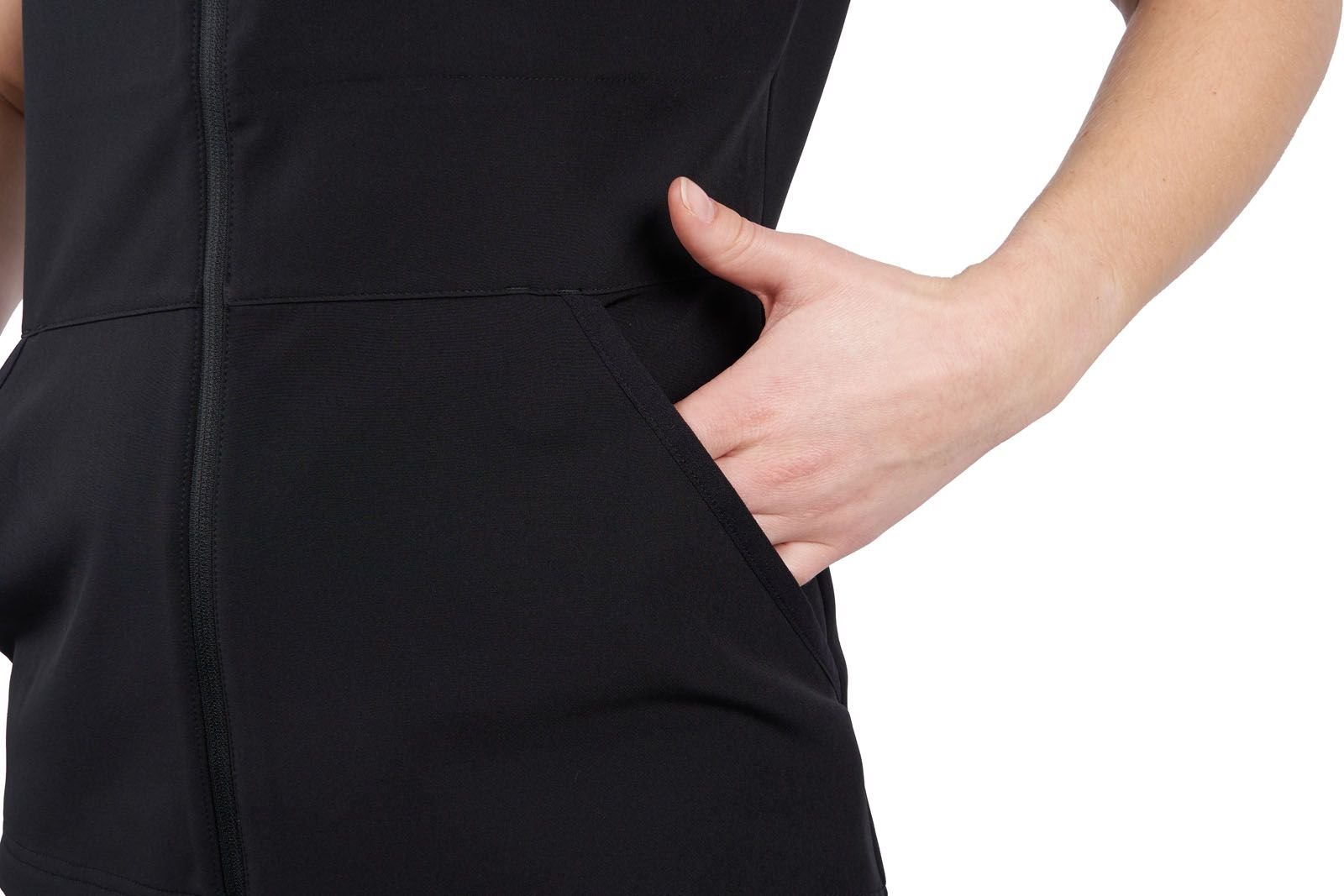 The vest is crafted from ultra-light softshell material, so lightweight that you’ll barely notice you’re wearing it. It offers essential pockets that cater to a dog handler’s needs. The large open pocket at the back provides ample space for balls, tugs and other toys without bouncing around when walking or running. Two spacious front pockets offer quick access to treats and feature accessory loops for securing small items like a whistle, waste bag dispenser, or car keys. The zipped chest pocket provides a safe place for your phone and other valuables.