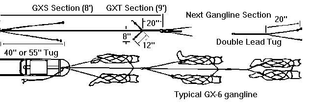 A gangline is the assembled lines which connect sled dogs to the sled. These lines consist of a number of component parts including a shock, a gangline section and the tug lines. These lines can also be used for running multiple dogs in a variety of activities including dryland mushing, scootering, bikejoring, skijoring and canicross.